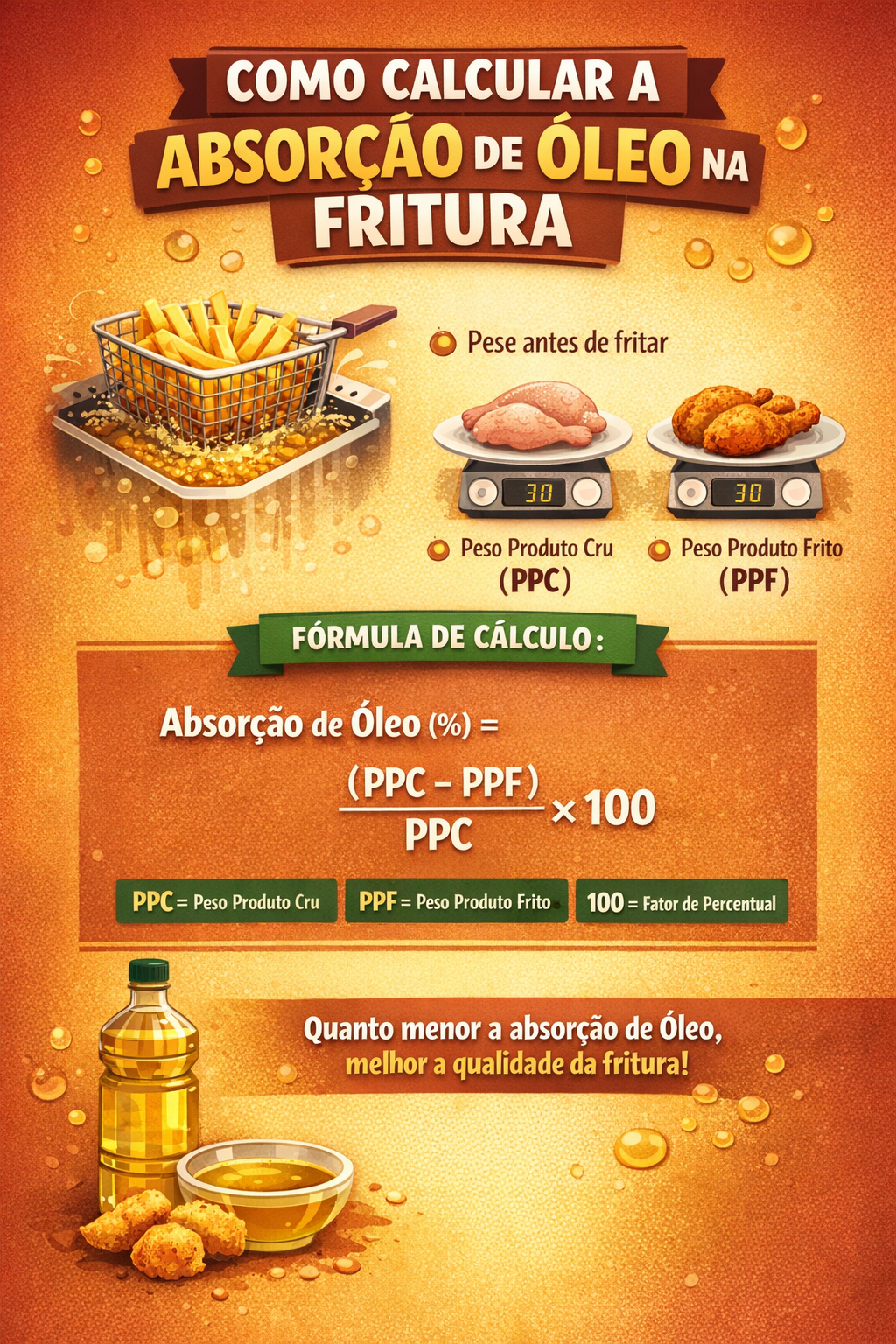 Como calcular a quantidade de óleo utilizado na fritura de uma determinada preparação?