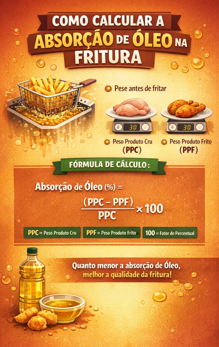 Durante o processo de fritura por imersão ocorre transferência simultânea de calor, água e lipídios entre o alimento e o meio de fritura. A evaporação da água do alimento gera porosidade na matriz alimentar, permitindo a penetração de óleo, principalmente na etapa final do processo e durante o resfriamento. Esse fenômeno altera significativamente o valor energético, o teor de lipídios e o rendimento da preparação, sendo fundamental seu conhecimento em estudos de composição nutricional, fichas técnicas e controle de qualidade em Unidades de Alimentação e Nutrição (UAN) (Bordin; Krolow; Kubota, 2013; Saguy; Dana, 2003).